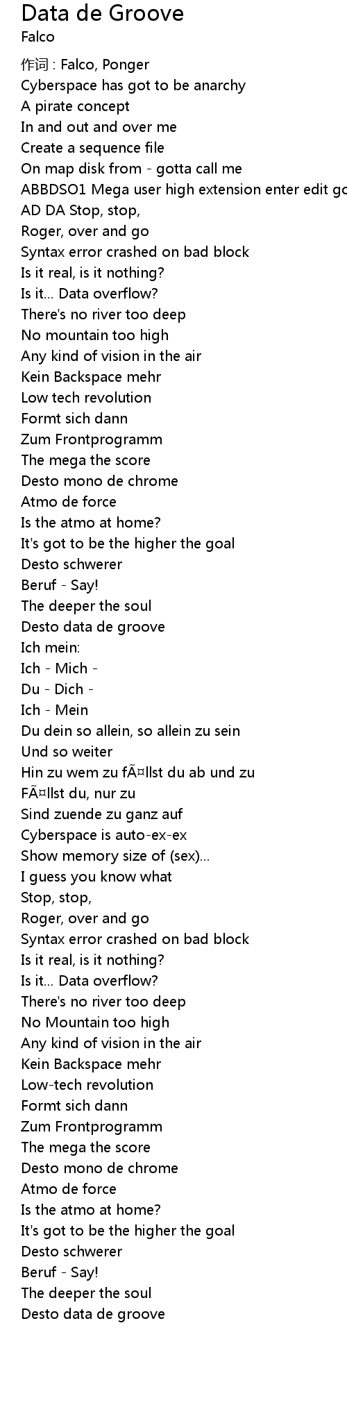 | 作词 : Falco, Ponger | |