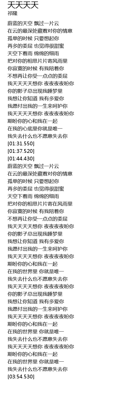 | [03:34.720] | wo tian tian tian tian xiang ni ye ye ye ye pan ni |