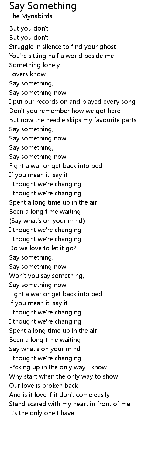 Won't you say something, |