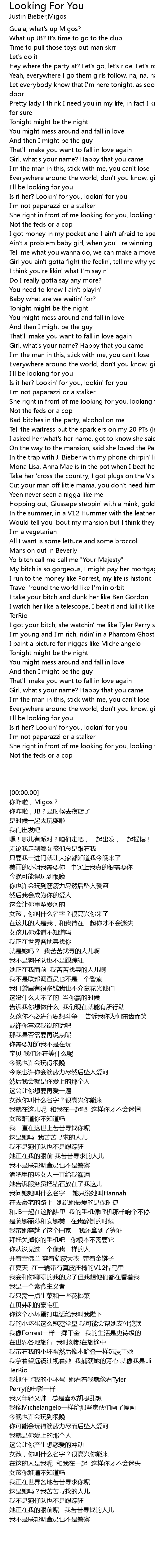 | [01:59.36] | She right in front of me looking for you, looking for you |