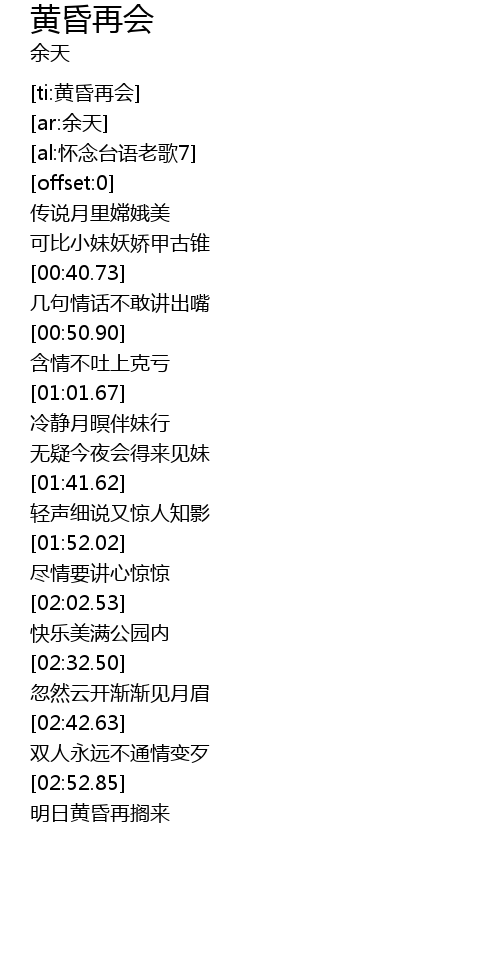 | [00:41.52] | 几句情话不敢讲出嘴 |