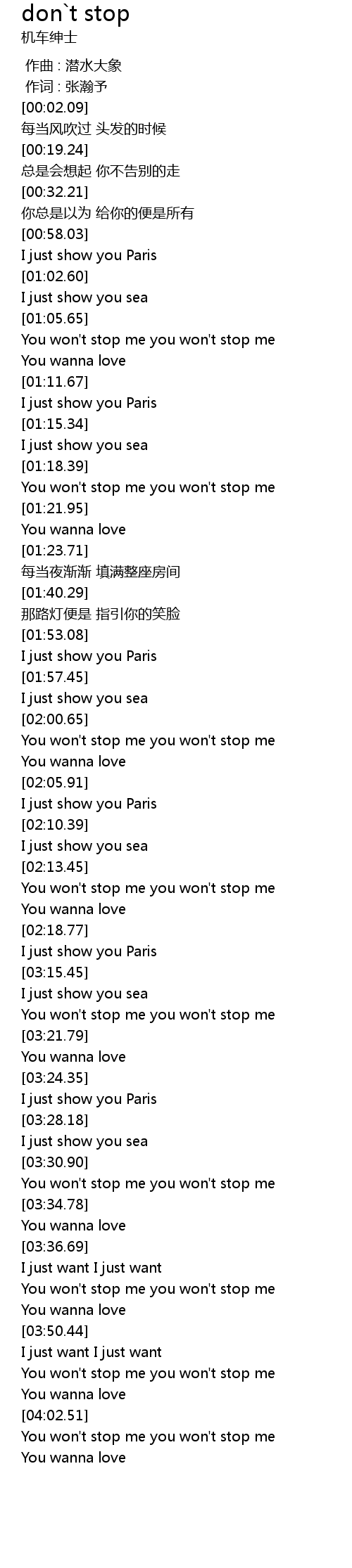 | [04:04.50] | You won' t stop me you won' t stop me |