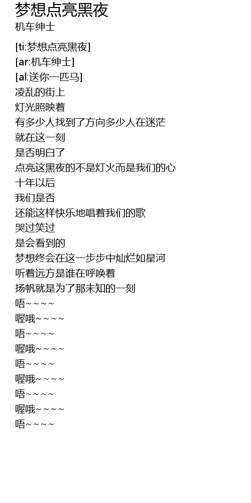 | ti: mèng xiǎng diǎn liàng hēi yè | |