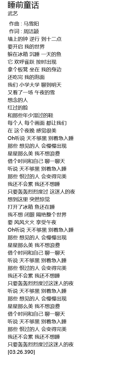 | [02:36.260] | 听说 天不够黑 别着急入睡 |