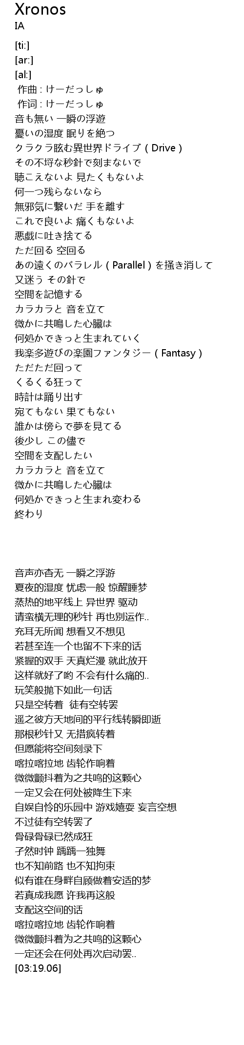 | [00:35.21] | クラクラ眩む異世界ドライブ(Drive) |