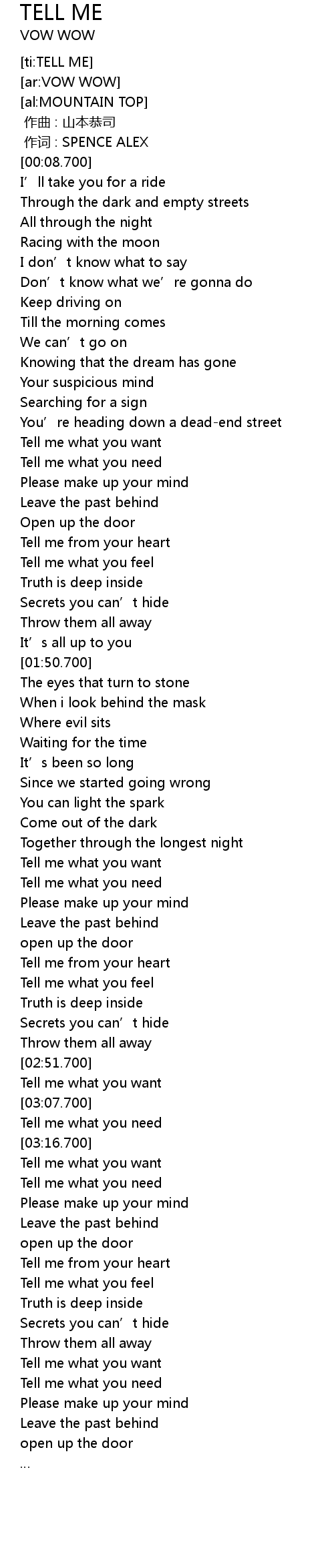 | [03:21.700] | Tell me what you want |