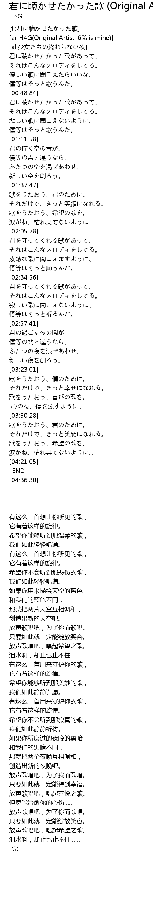 | [03:51.80] | 歌をうたおう、君のために。 |