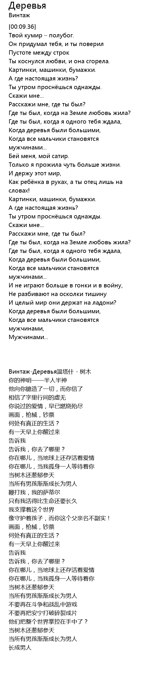 Деревья  Lyrics