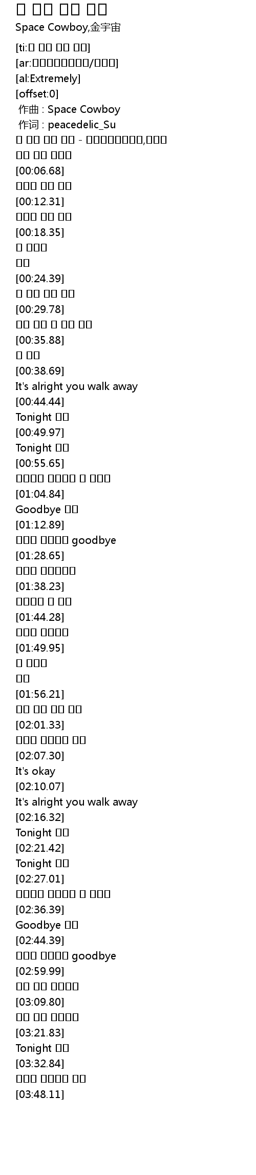 | [00:00.52] | 난 이제 네겐 달라 - 스페이스카우보이,김우주 |