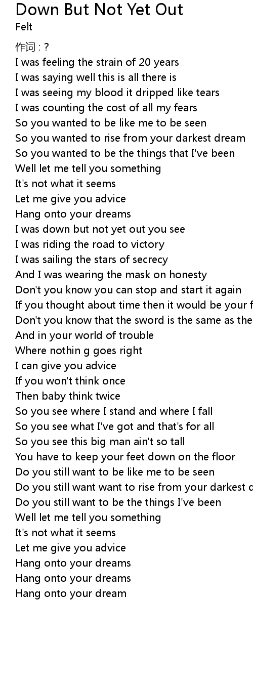 | I was down but not yet out you see | |