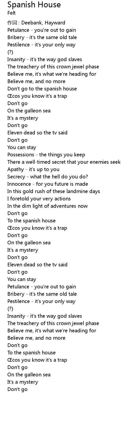 | Don't go to the spanish house | |