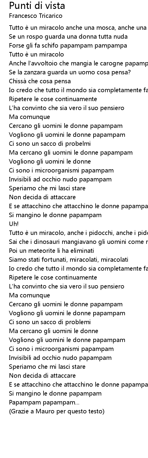| Tutto è un miracolo anche una mosca, anche una mosca, papampam pampam | |