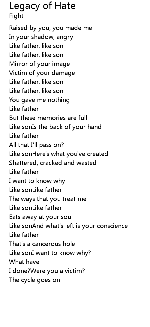 Legacy of Hate Lyrics