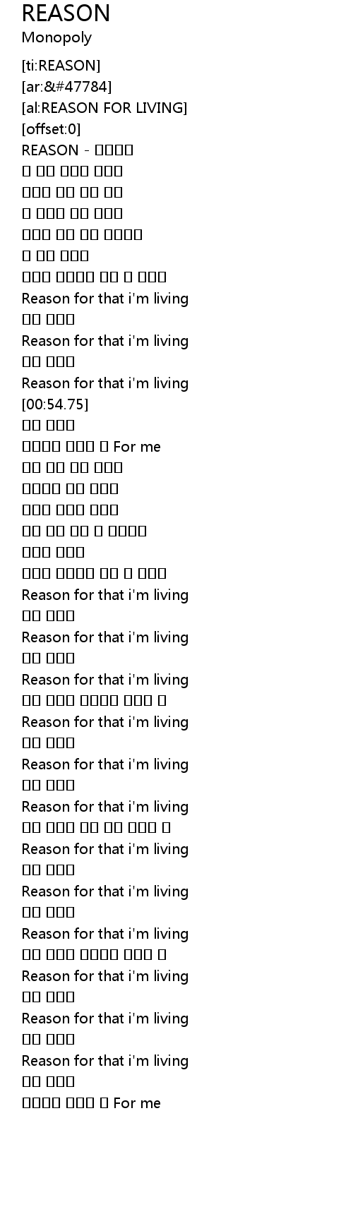 | [00:44.41] | Reason for that i' m living |