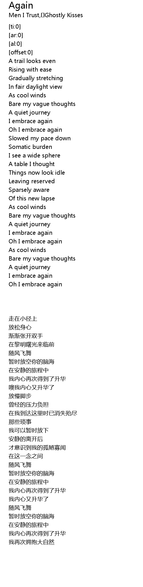 Oh I embrace again |