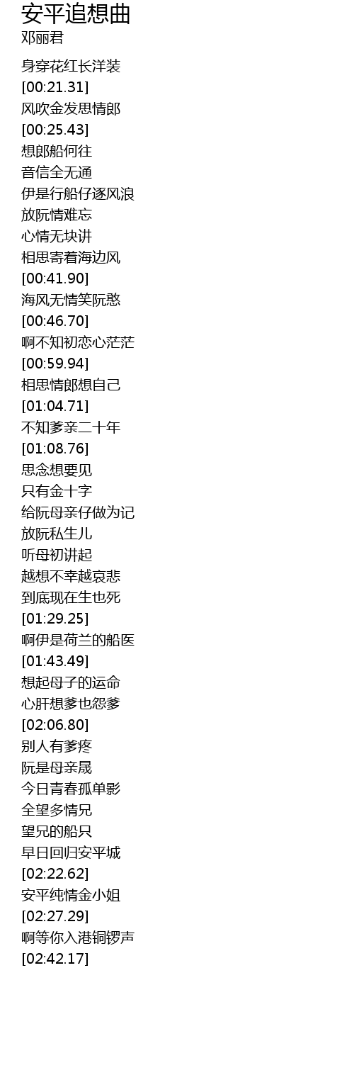 | [02:23.26] | ān píng chún qíng jīn xiǎo jiě |