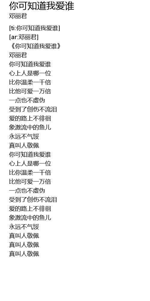 | [00:15.304] | nǐ kě zhī dào wǒ ài shuí |