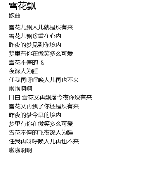 | kou bai: xue hua you zai piao luo jin ye ni mei you lai | |