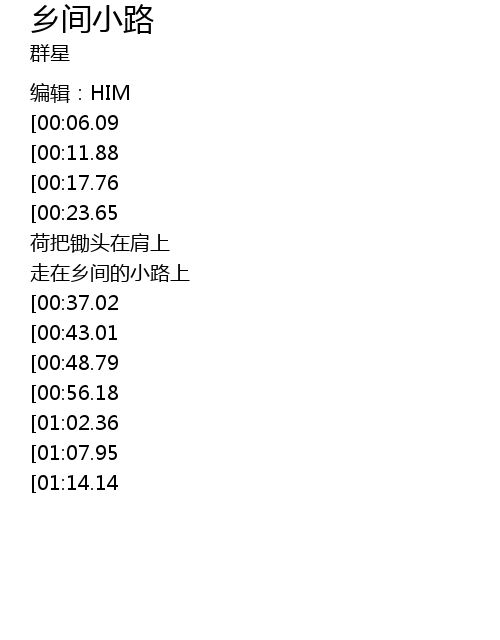 | [01:25.91][00:06.09] | 走在乡间的小路上 |