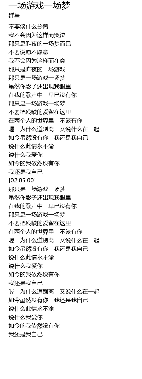 | [02:15.00] | 那只是一场游戏一场梦 |