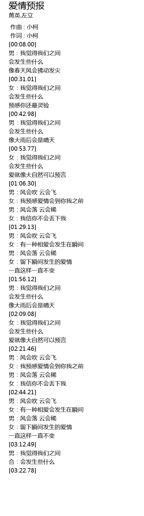 | [02:27.52] | 女:我预感爱情会到你我之前 |