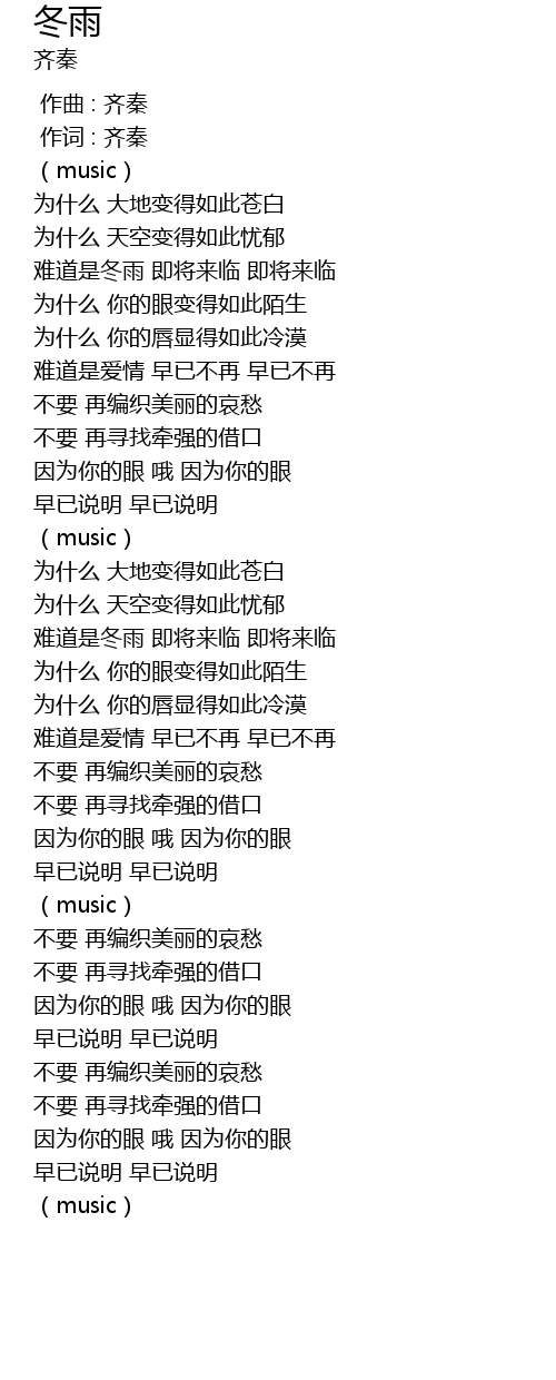 | [00:55.459] | 难道是冬雨 即将来临 即将来临 |