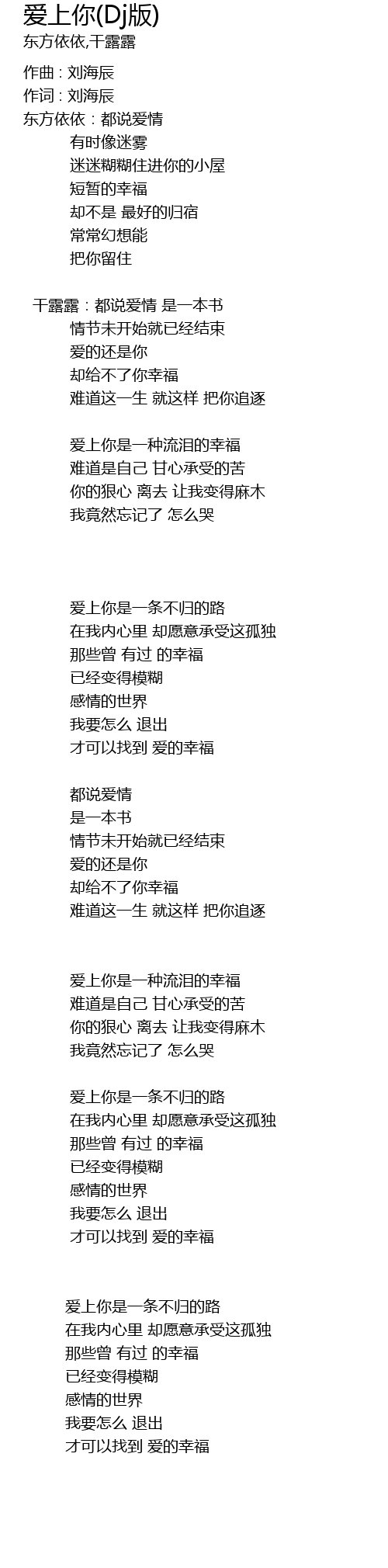 | 爱上你是一条不归的路 | |
