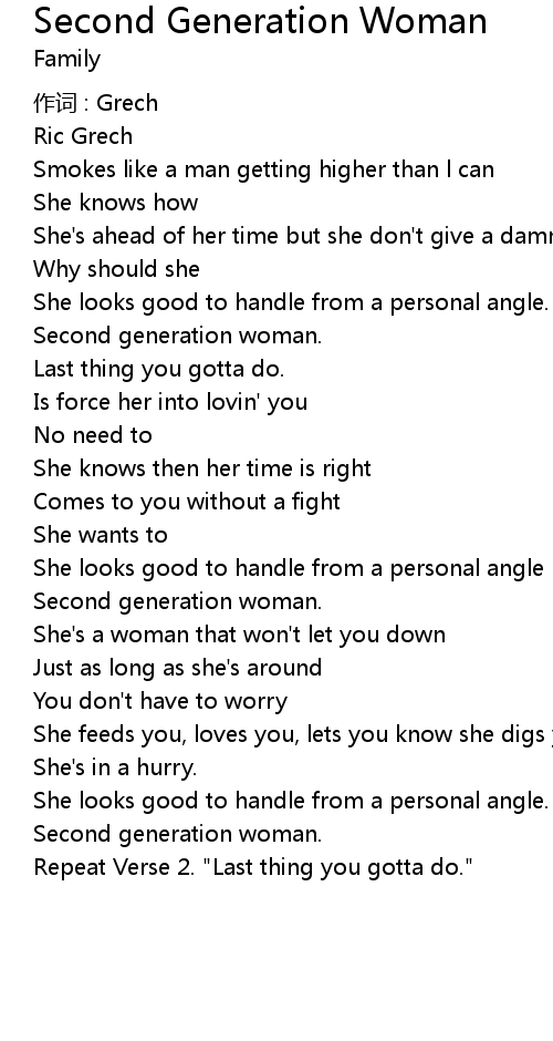 | Song | Second Generation Woman |