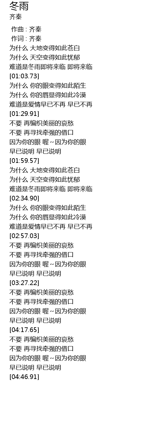 | [00:00.00] | 作曲 : 齐秦 |