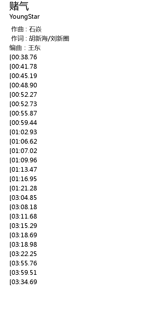 | [00:01.00] | 作词 : 胡新海/刘新圈 |