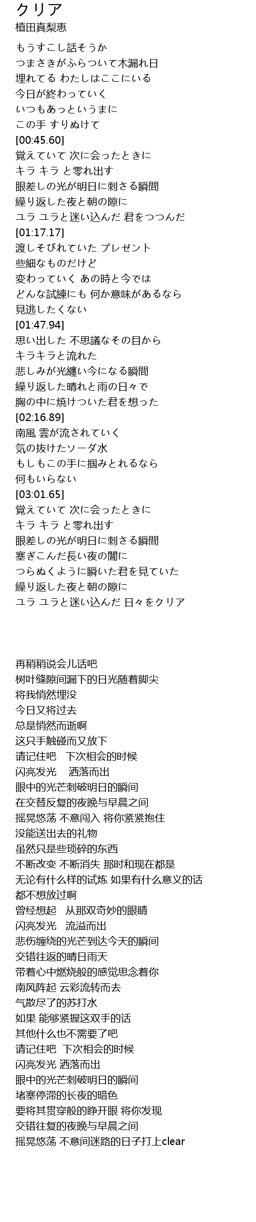 | [03:36.49] | ユラ ユラと迷い込んだ 日々をクリア |