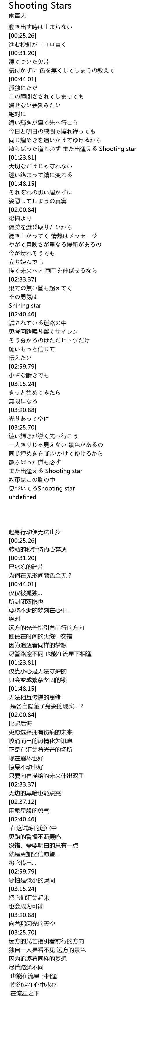 | [01:17.15] | 散らばった道も必ず また出逢える Shooting star |