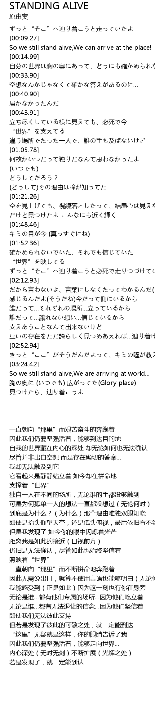 | [03:25.94] | So we still stand alive,We are arriving at world... |