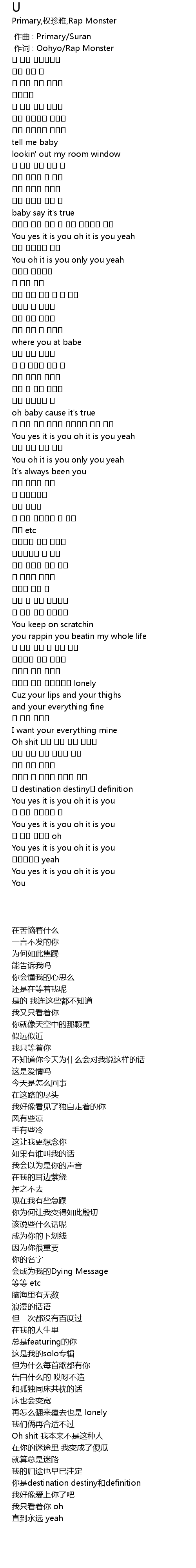 | [00:01.00] | 作词 : Oohyo/Rap Monster |