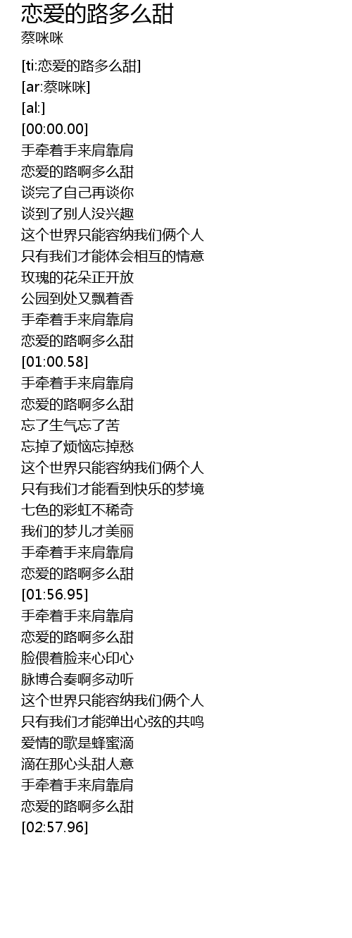 | [ti:恋爱的路多么甜] | |