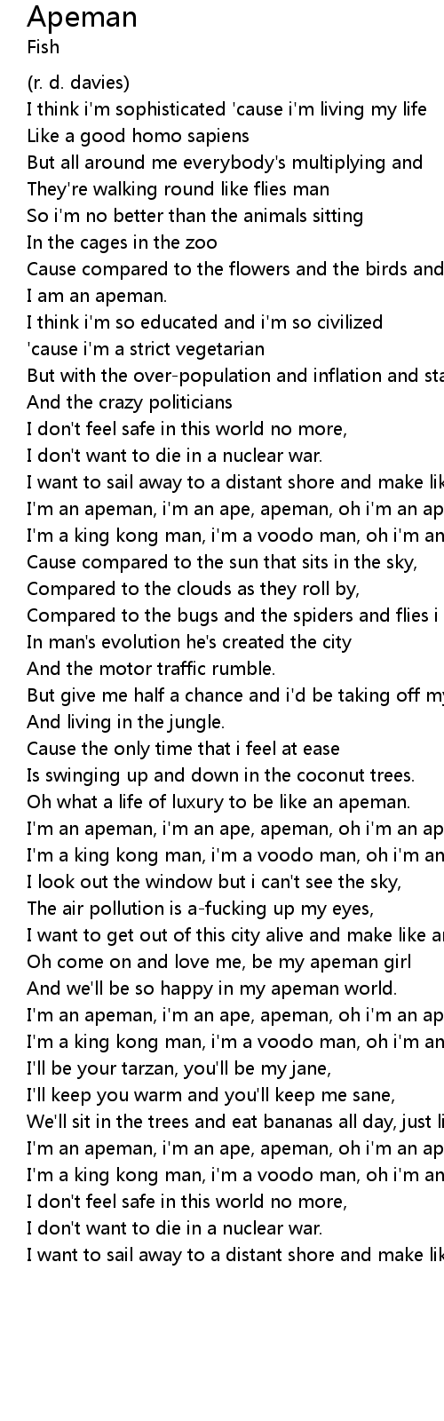 I'm an apeman, i'm an ape, apeman, oh i'm an apeman |