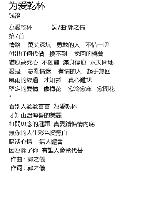 | 為愛乾杯 詞/曲:郭之儀 | |