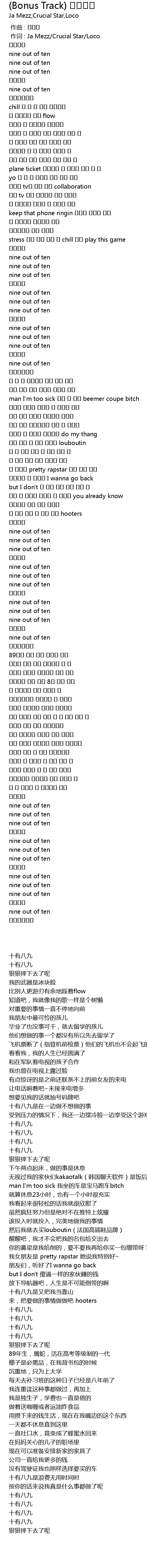 | [00:01.00] | 作词 : Ja Mezz/Crucial Star/Loco |