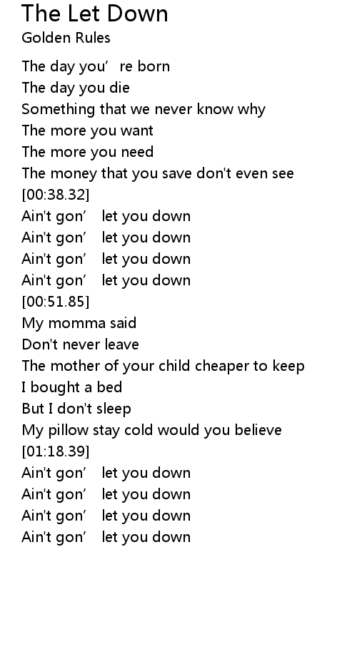 | [01:22.49] | Ain' t gon' let you down |