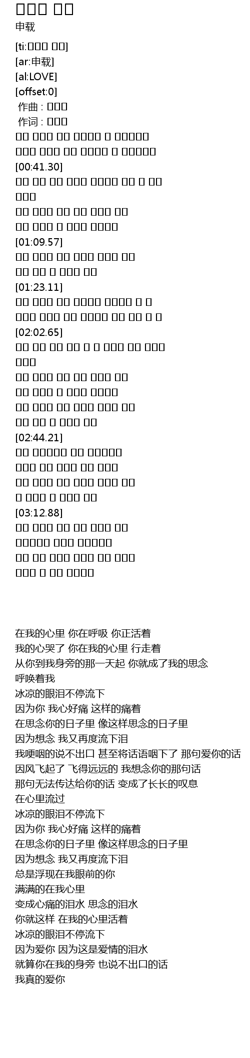 니가 숨쉰다 니가 살고있다 내 가슴속에서 |
