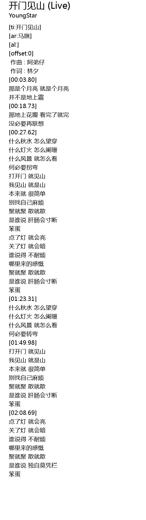 | [01:51.19] | dǎ kāi mén jiù jiàn shān |