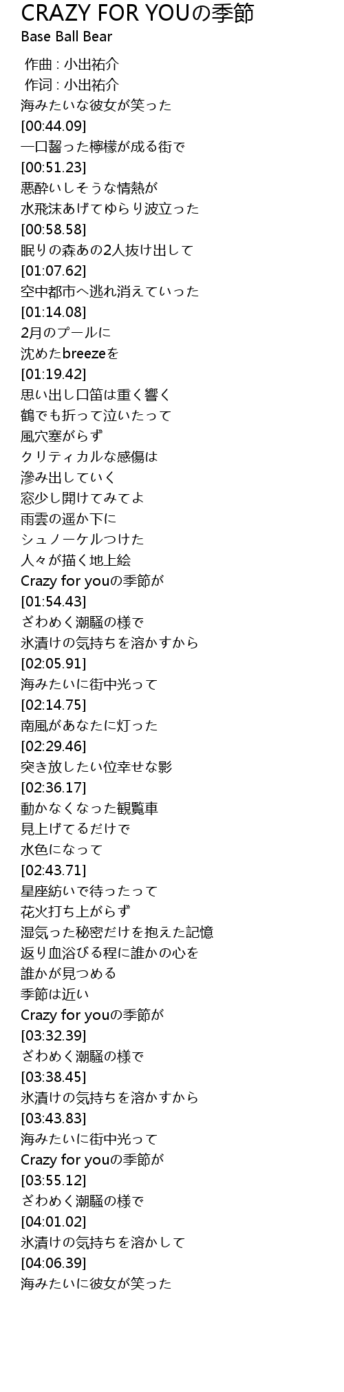 | [03:50.51] | Crazy for youの季節が |