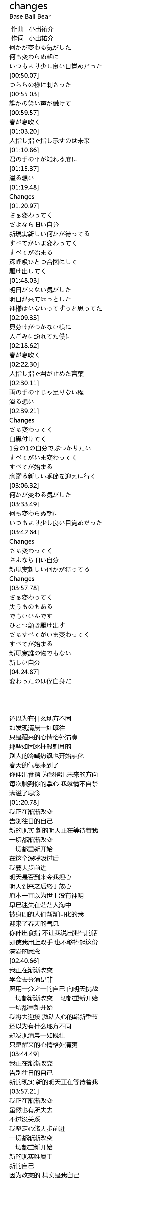 | [01:20.78] | Changes |