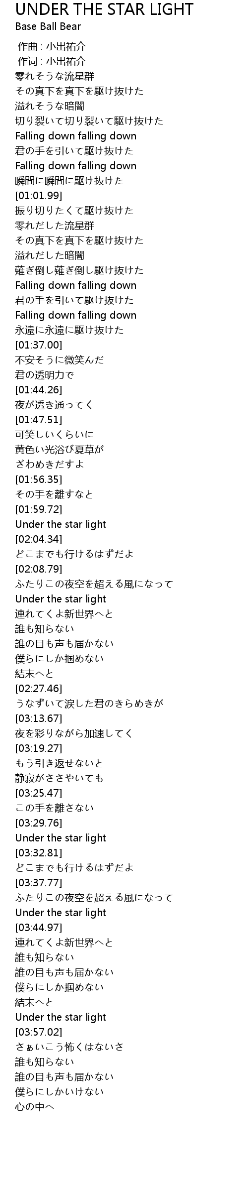 | [00:40.90] | その真下を真下を駆け抜けた |