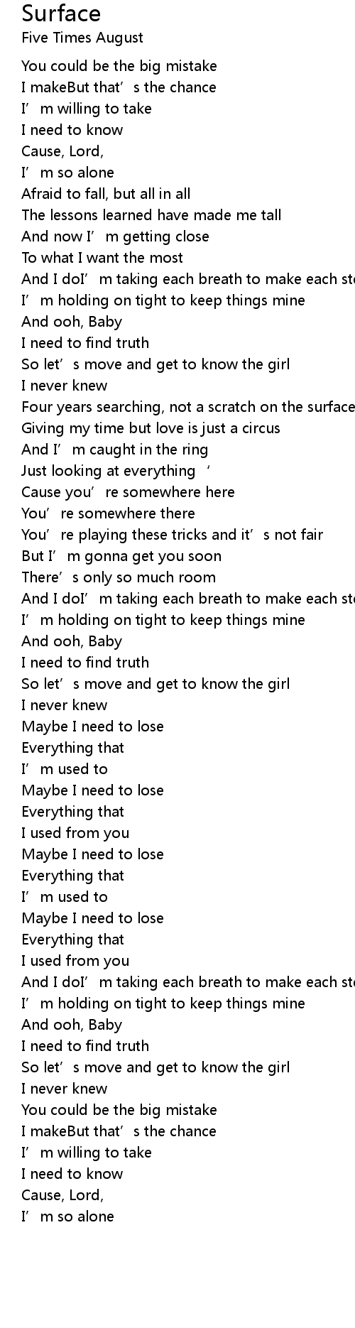 | Song | Surface |