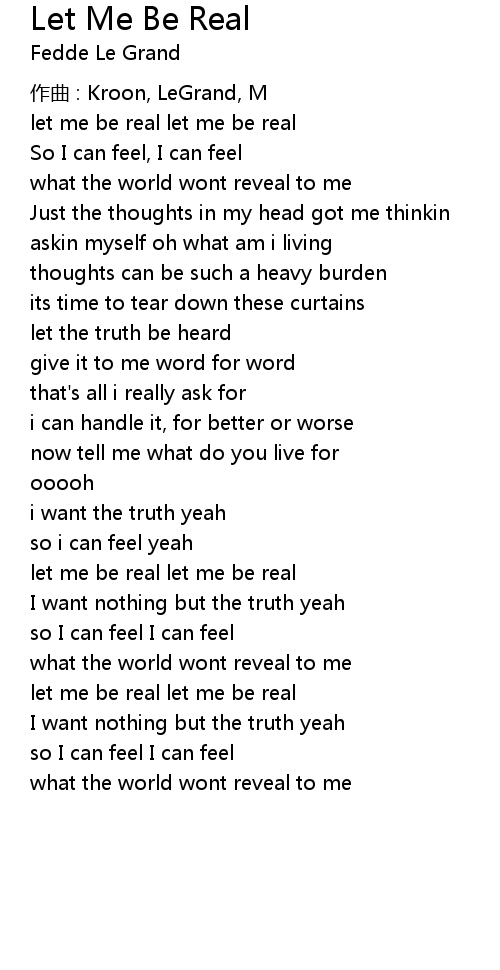 | let me be real let me be real | |