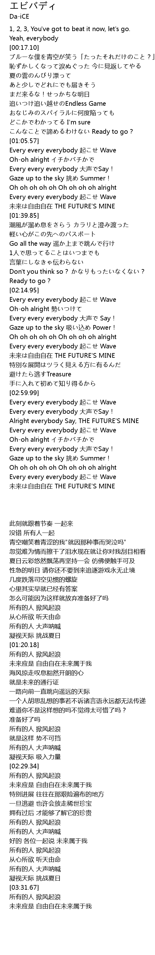 | [03:17.37] | Every every everybody 起こせ Wave |