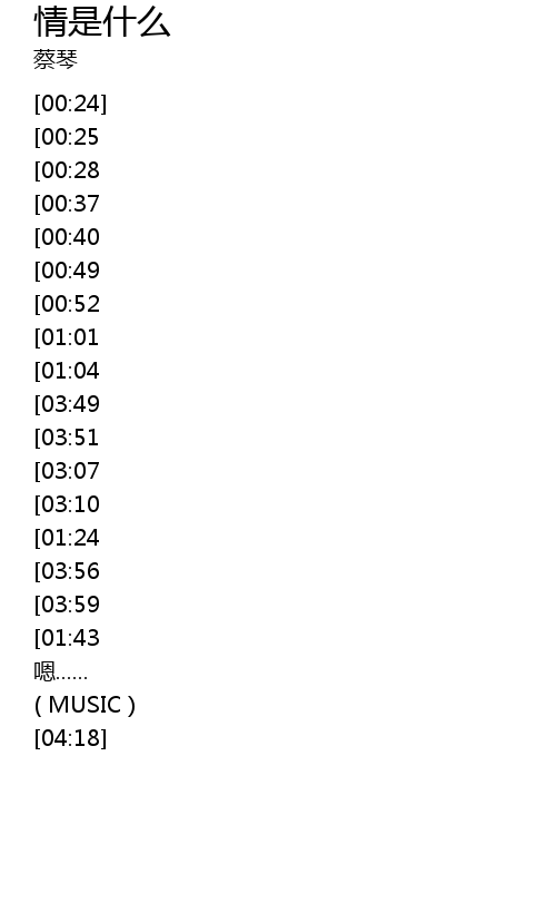 | [04:16][03:51][03:39][03:21][03:03][01:33][01:15] | 情是什么 |
