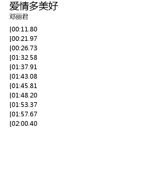 | [02:14.85][01:32.58][00:32.02] | 不再相思 不再烦恼 |