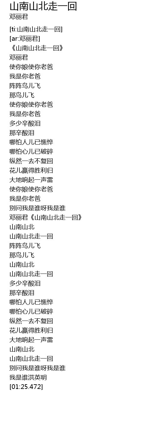 | [01:17.663] | dèng lì jūn shān nán shān běi zǒu yī huí |